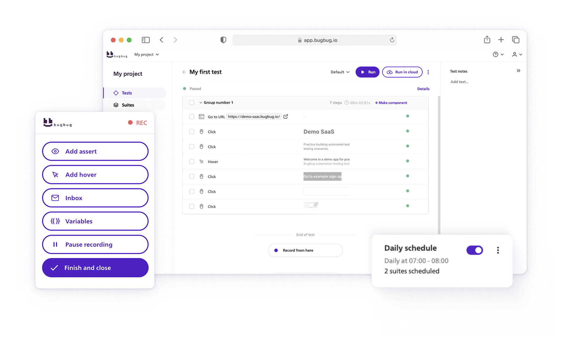 You can run automated tests from your computer or schedule them to run in the cloud.