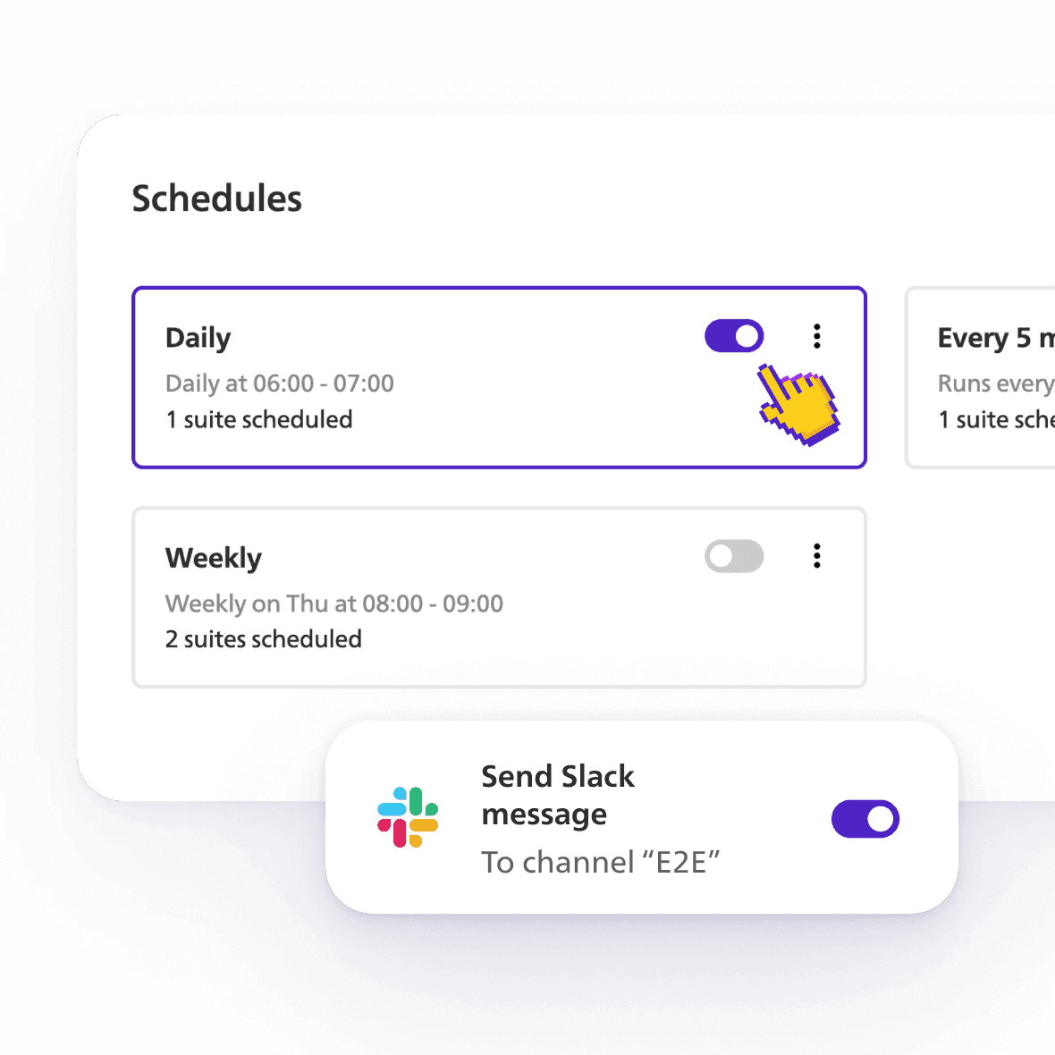 Integrate into your CI/CD pipeline to automatically run tests on schedule using cloud execution.